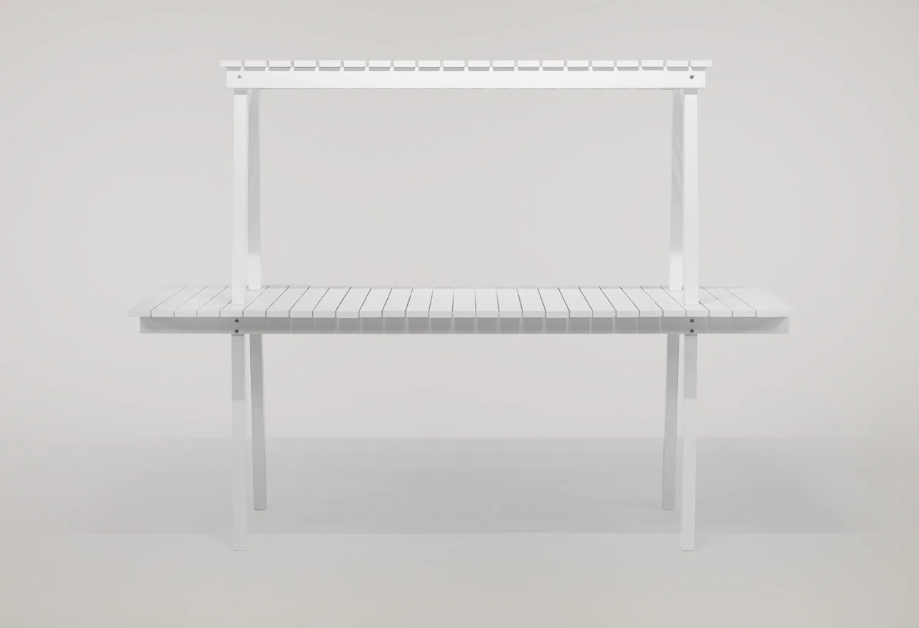 A cada dia o tamanho das casas diminui em área no mundo todo, mas isso não significa viver pior. Significa que precisamos de móveis mais inteligentes e soluções que otimizam todos os espaços disponíveis. Verticalizar os espaços de estocagem é uma solução para casas cada vez menores. A prateleira, acima da MESA GARUPA, é outra solução inovadora para guardar objetos que usamos diariamente sobre a mesa. A prateleira possibilita liberar o espaço do tampo e a mesa ainda acomoda seis pessoas com conforto. Além disso, a prateleira se transforma num aparador graças a um encaixe bem simples entre as duas peças, ambas vendidas separadamente. É o usuário que decide se quer usa-las juntas ou separadas.